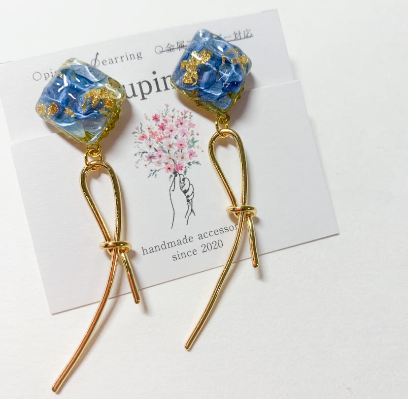 本物のお花が入った耳飾り。